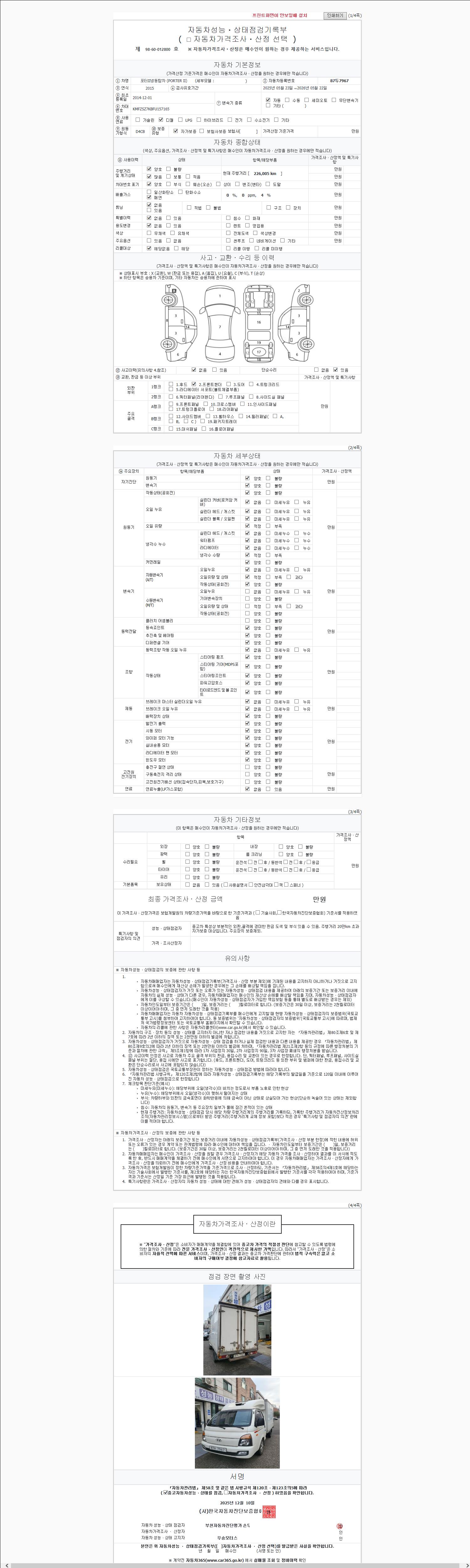 사고유무 성능기록부 참조 제시번호 제 2025227729 호