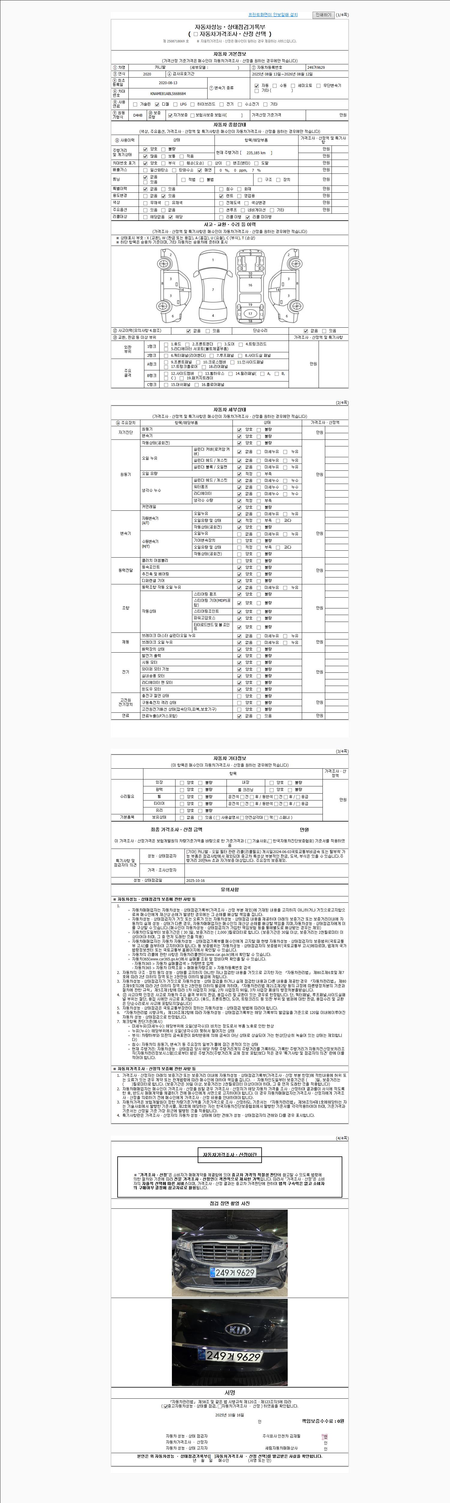 2. 차량 등록증이나 성능점검지 등을 상담자에게 요청및 확인하시고 사전에 미리 점검 하시기를 권유드립니다.