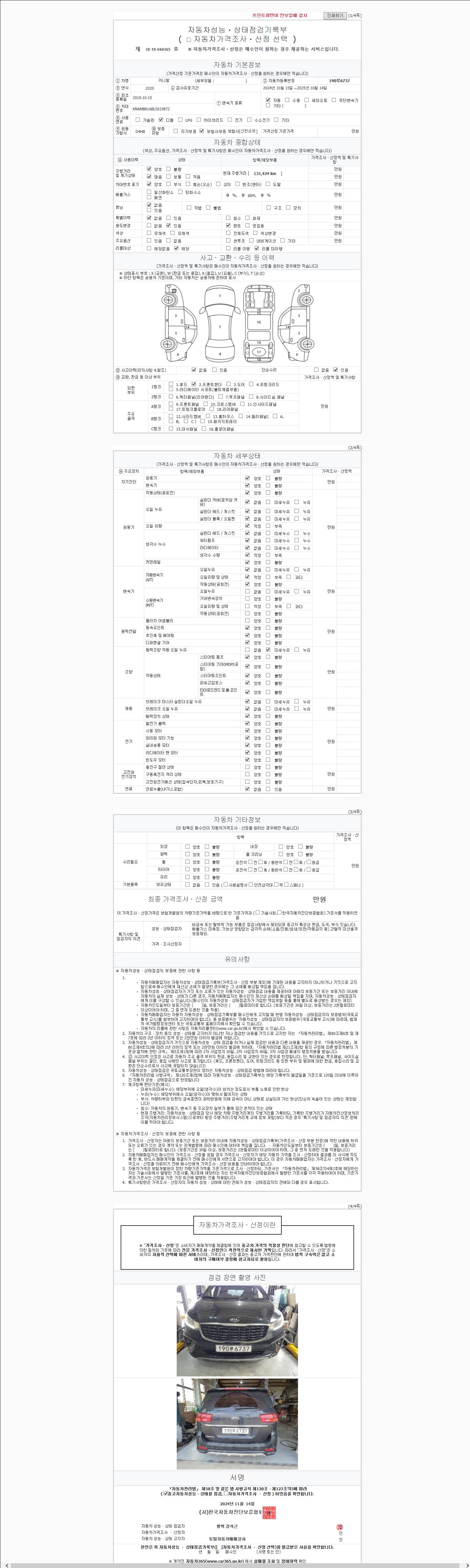 | 주행거리 | 131,424 km | 차량번호 | 190루6737 |