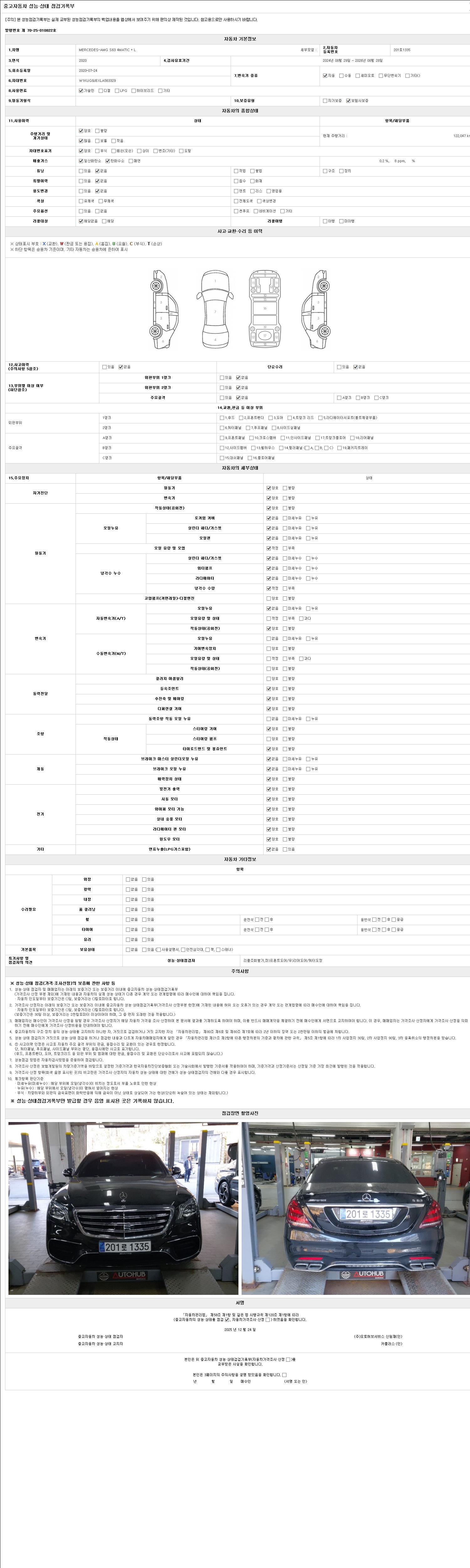 자동차관리법 시행규칙 제120조의 규정에 따라 별지 제 82호서식 《중고자동차 성능, 상태점검 기록부》를 발행한 성능, 상태점검자 및 매매자는 아래의 보증기간 또는 보증거리 이내의 중고자동차, 성능점검 기록부에 기재된 내용과 자동차의 실제 성능, 상태가 다른 경우 계약 또는 관계법령에 따라 매수인에 대하여 책임을 집니다.