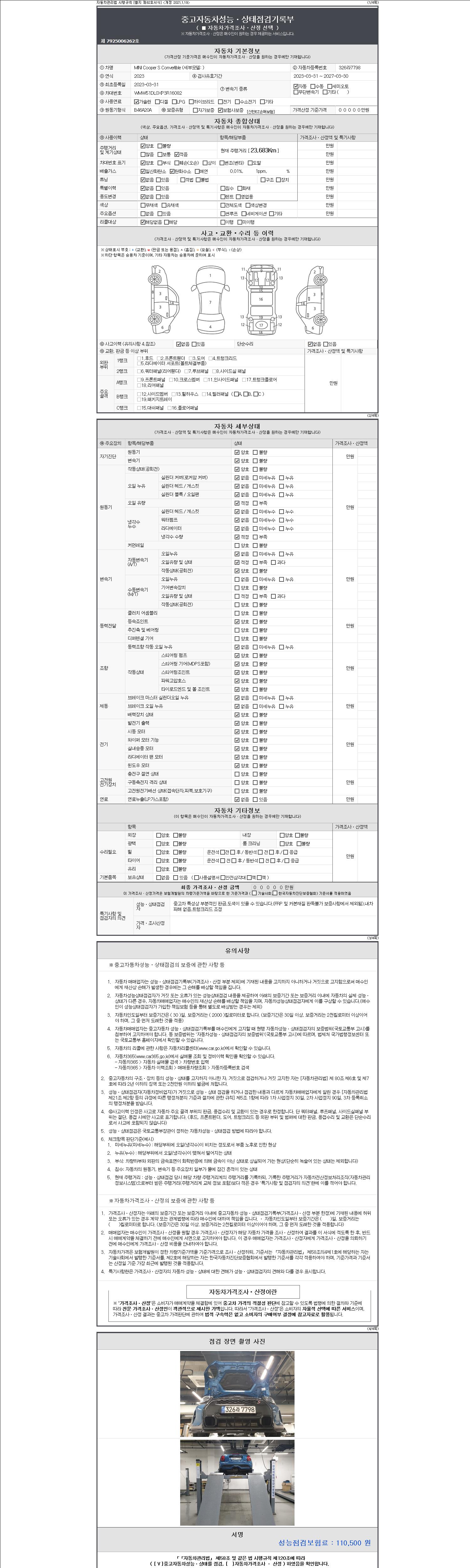 2. 차량 등록증이나 성능점검지 등을 상담자에게 요청및 확인하시고 사전에 미리 점검 하시기를 권유드립니다.