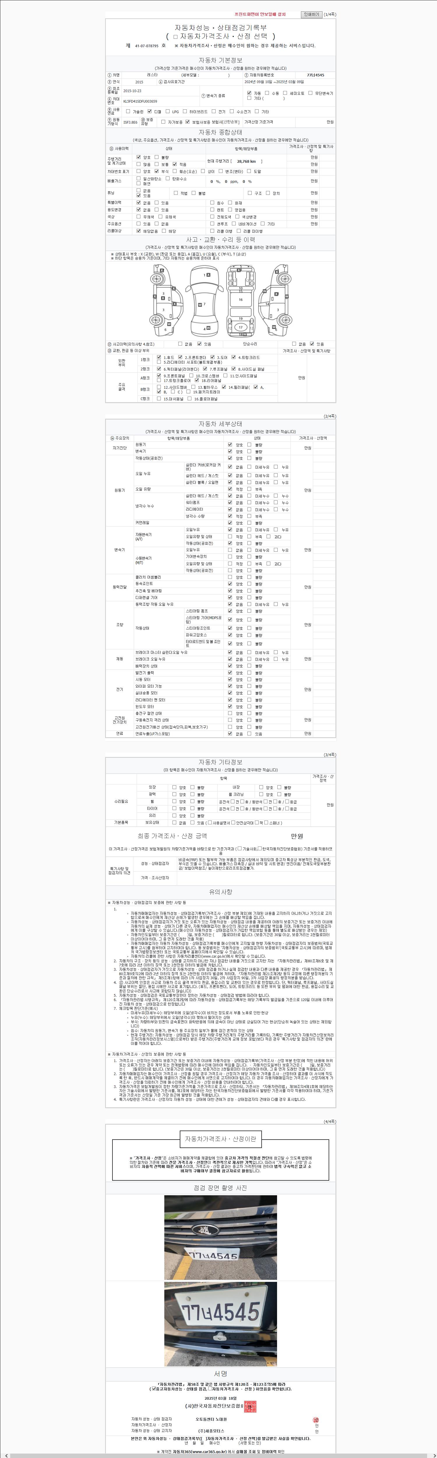 2. 차량 등록증이나 성능점검지 등을 상담자에게 요청및 확인하시고 사전에 미리 점검 하시기를 권유드립니다.