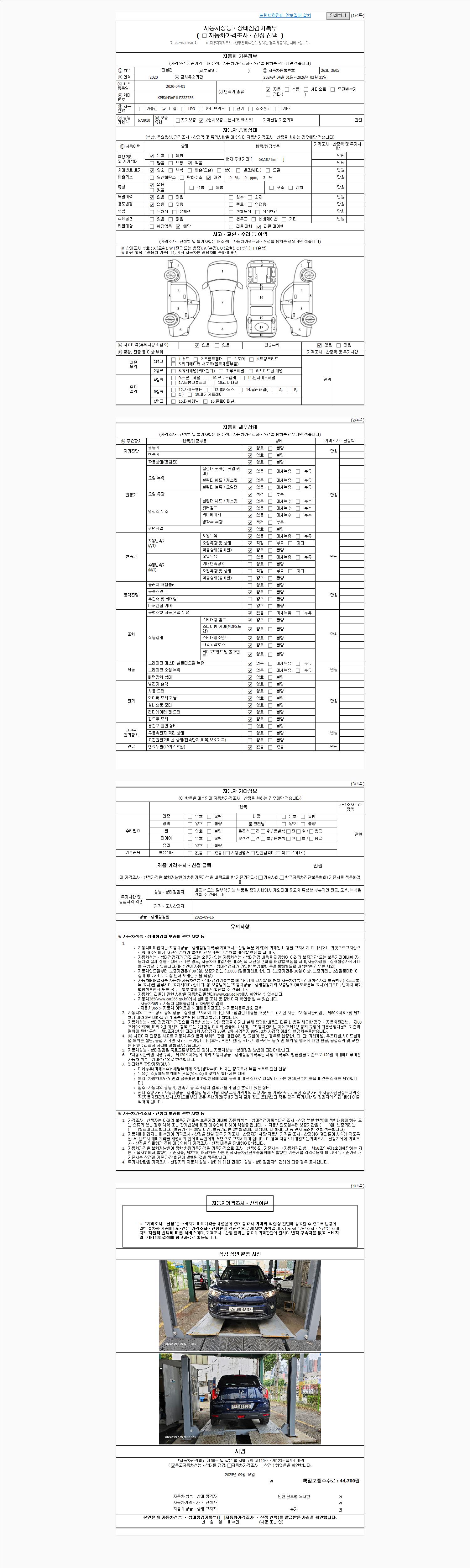 2. 차량 등록증이나 성능점검지 등을 상담자에게 요청및 확인하시고 사전에 미리 점검 하시기를 권유드립니다.
