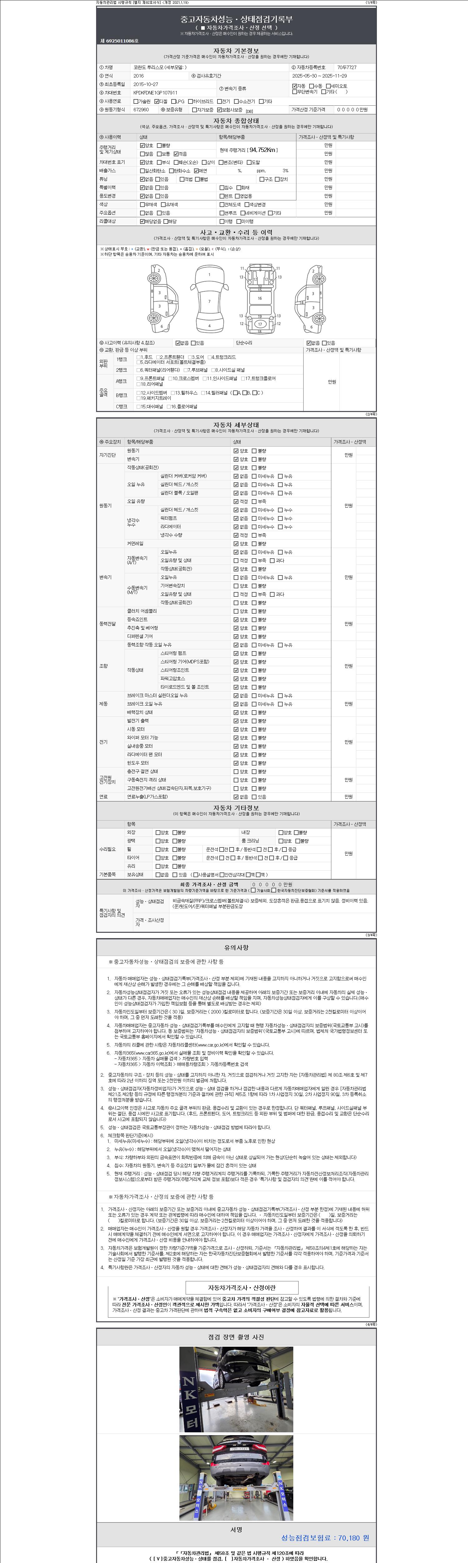 주행거리 94,752 km 차량번호 70두7727