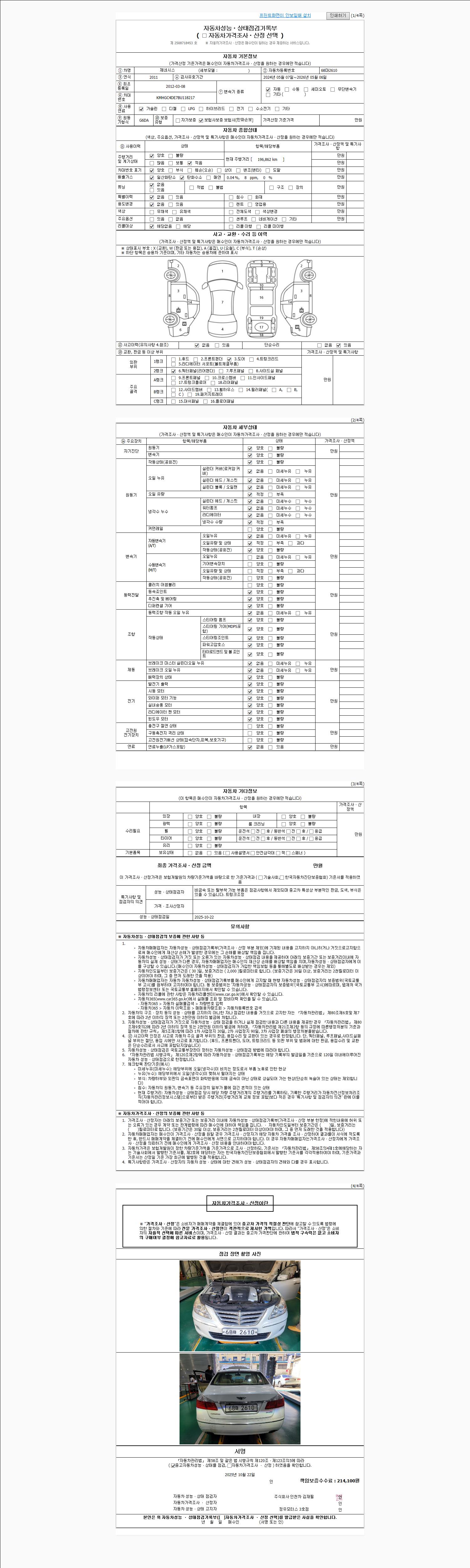 사고유무 성능기록부 참조 제시번호 제 2025057480 호