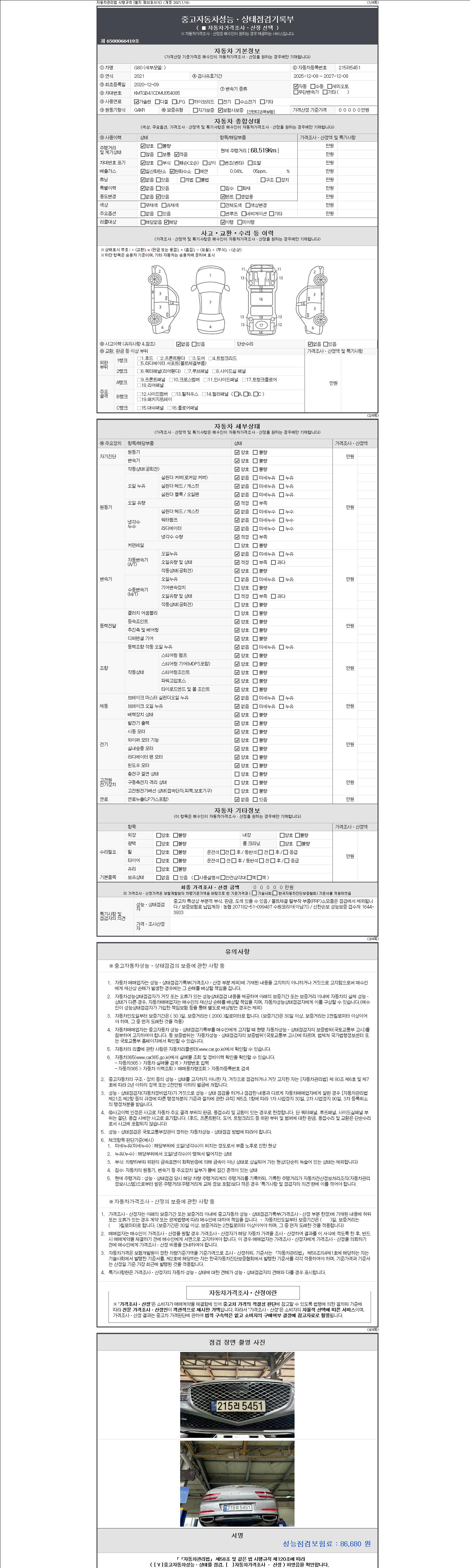| 주행거리 | 68,519 km | 차량번호 | 215러5451 |