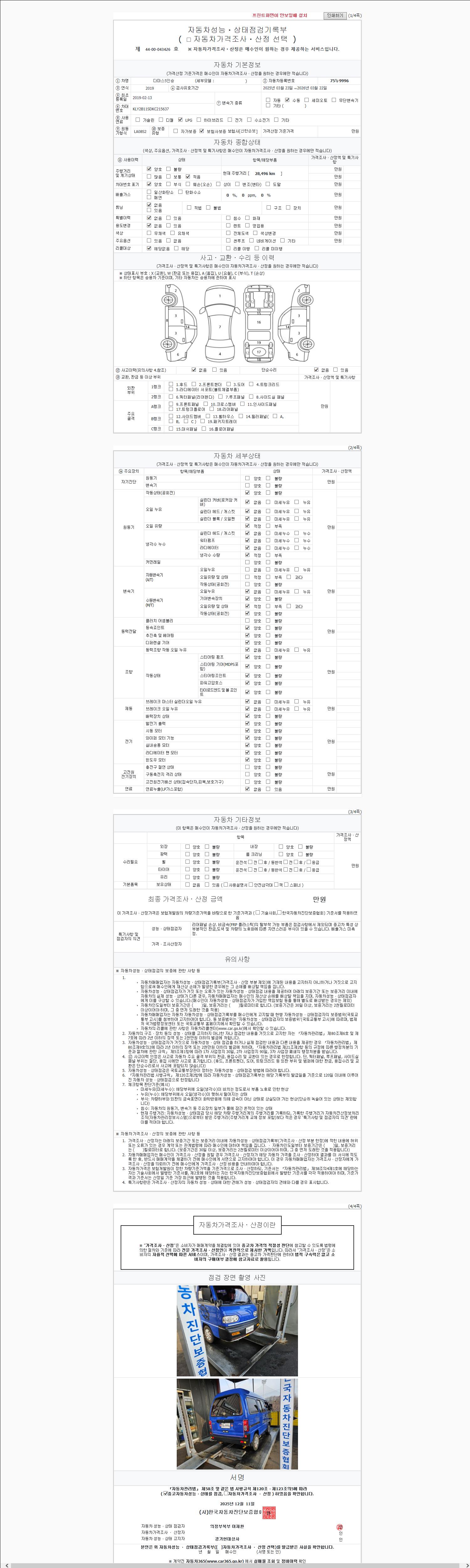 사고유무 성능기록부 참조 제시번호 제 2025228753 호