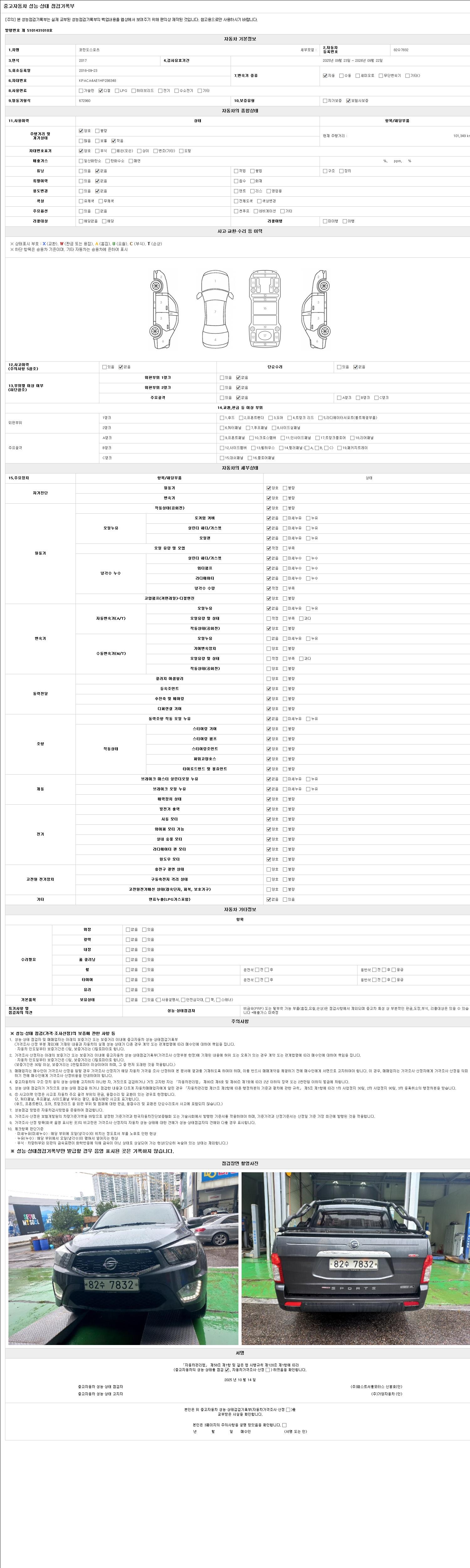 2. 차량 등록증이나 성능점검지 등을 상담자에게 요청및 확인하시고 사전에 미리 점검 하시기를 권유드립니다.