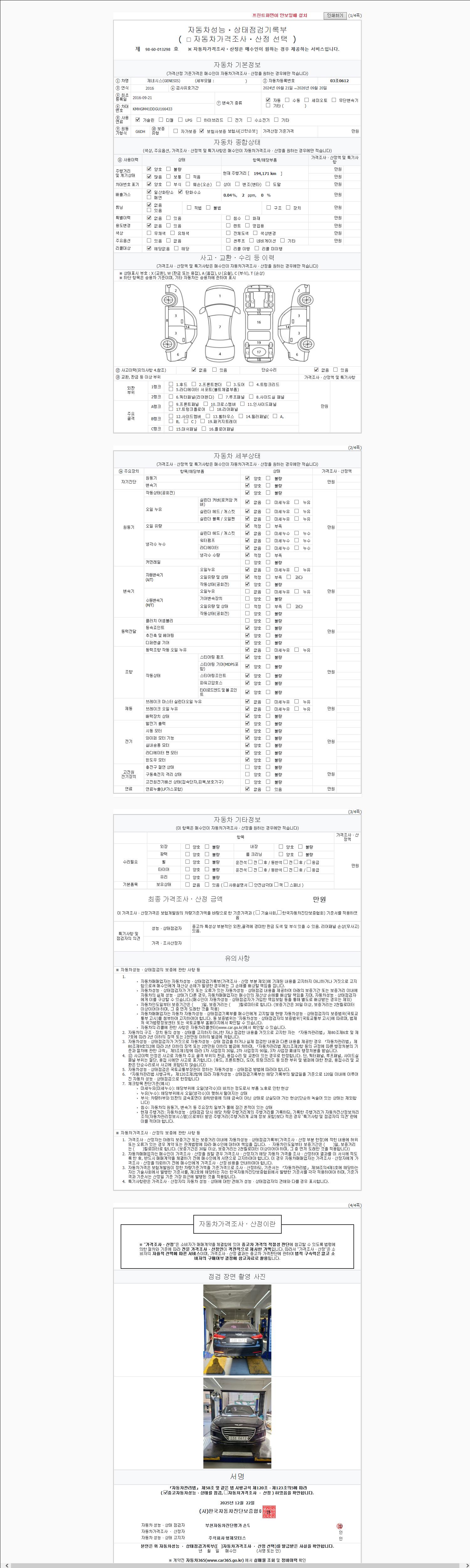 사고유무 성능기록부 참조 제시번호 제 2025235612 호