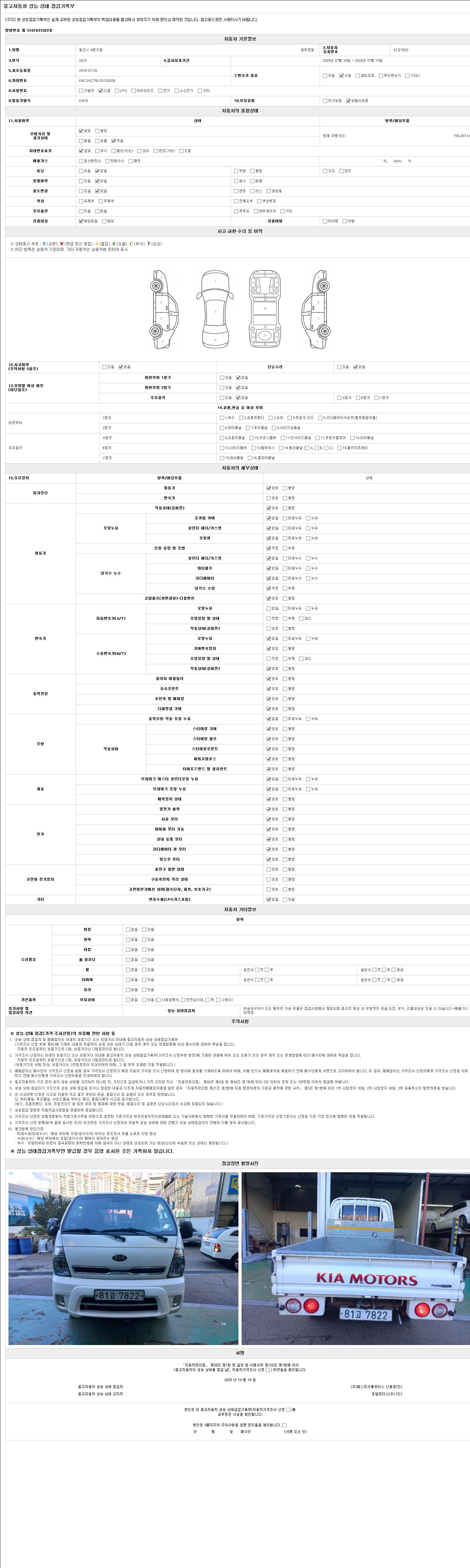 사고유무 성능기록부 참조 제시번호 제 2025019989 호