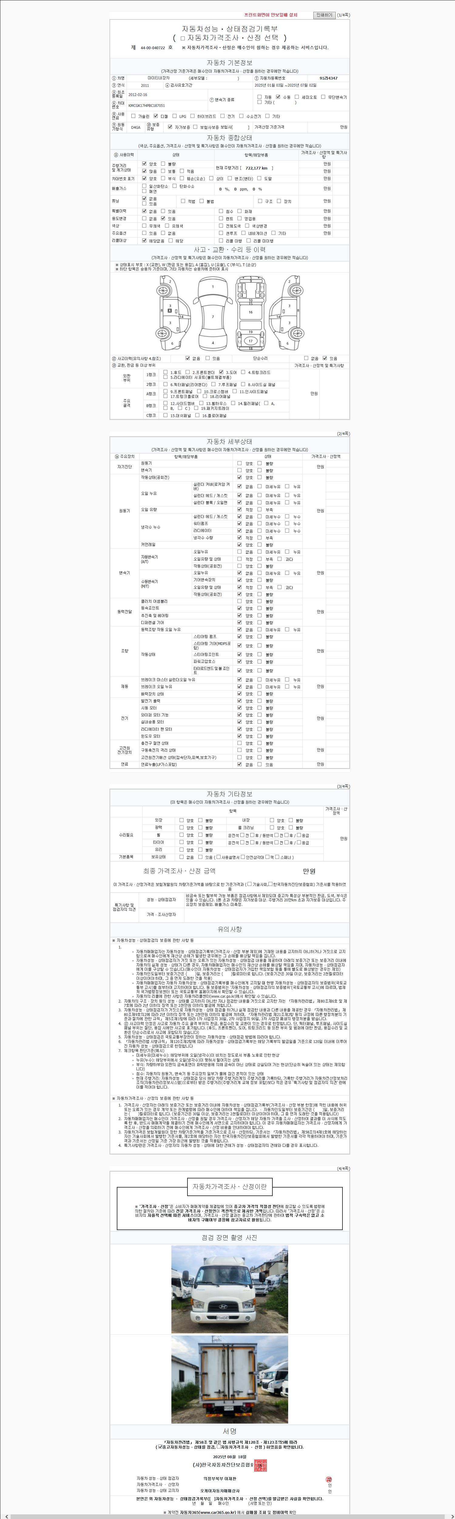 | 주행거리 | 722,215 km | 차량번호 | 91라4347 |