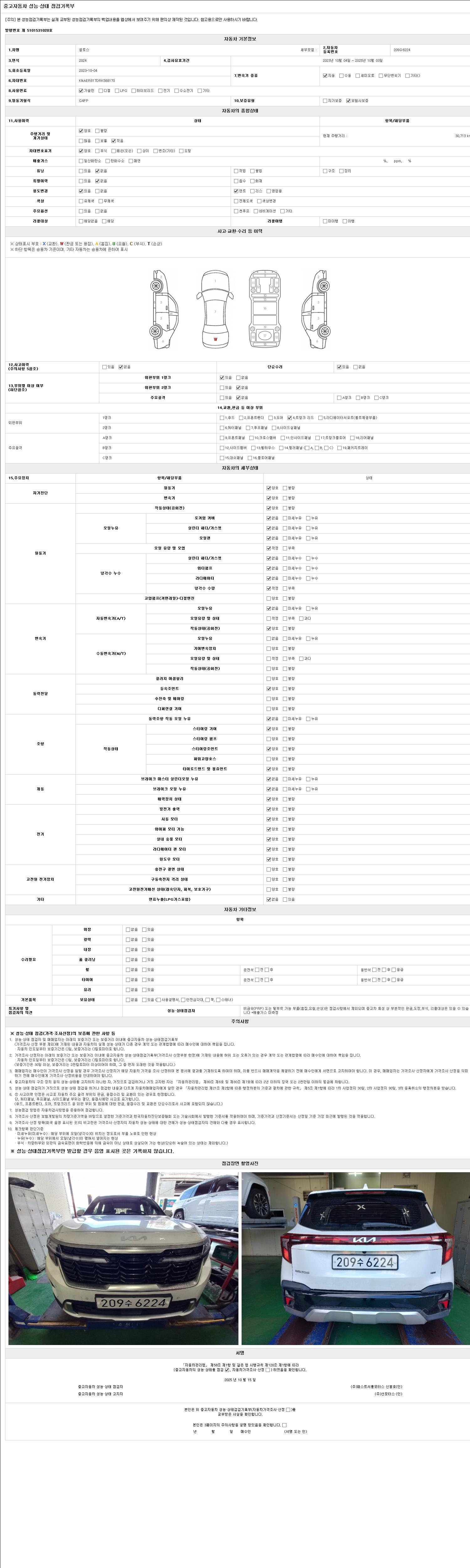 사고유무 성능기록부 참조 제시번호 제 2025033861 호