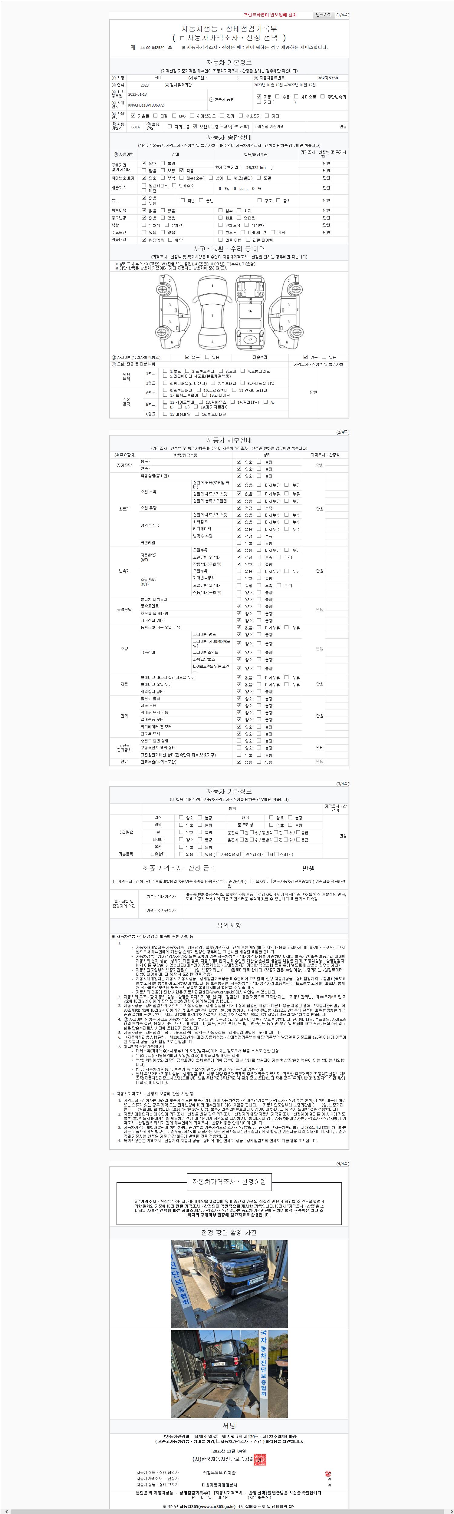 사고유무 성능기록부 참조 제시번호 제 2025204082 호