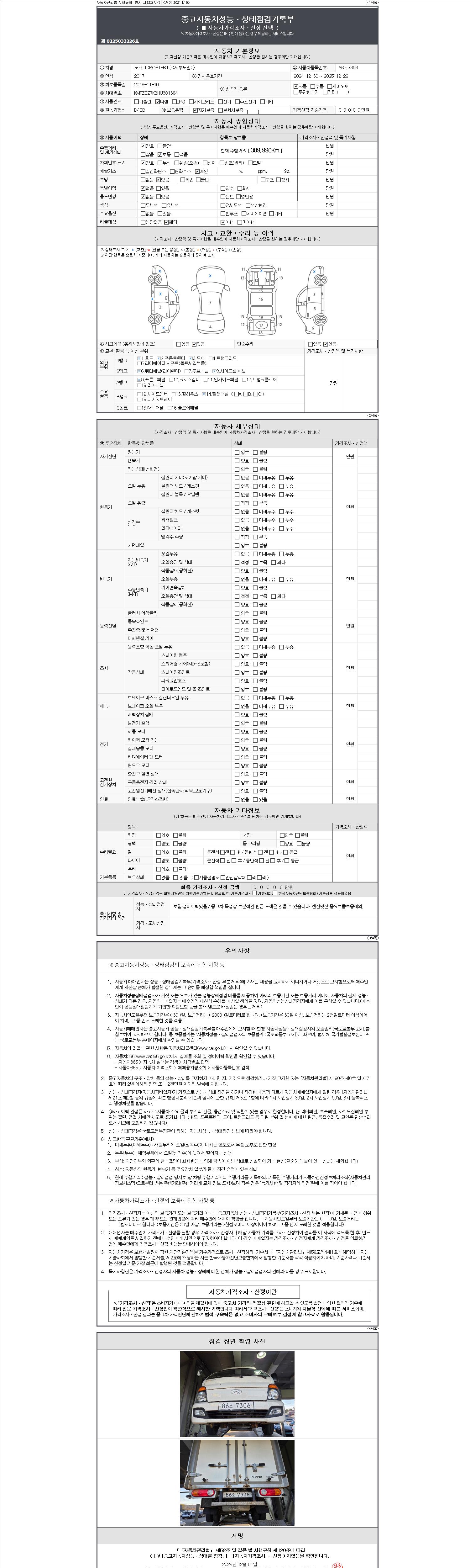 | 주행거리 | 389,990 km | 차량번호 | 86조7306 |