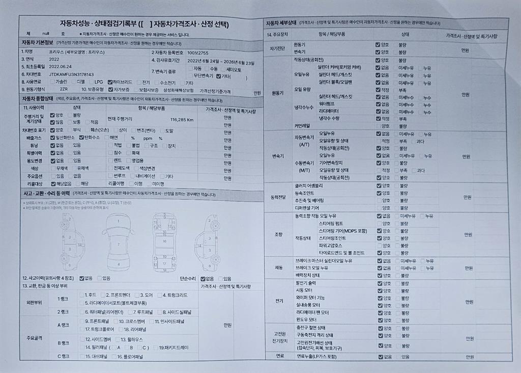 오토|휘발유 하이브리드|2022년 6월|116,285 km 100보2755| cc|회색|무사고 |