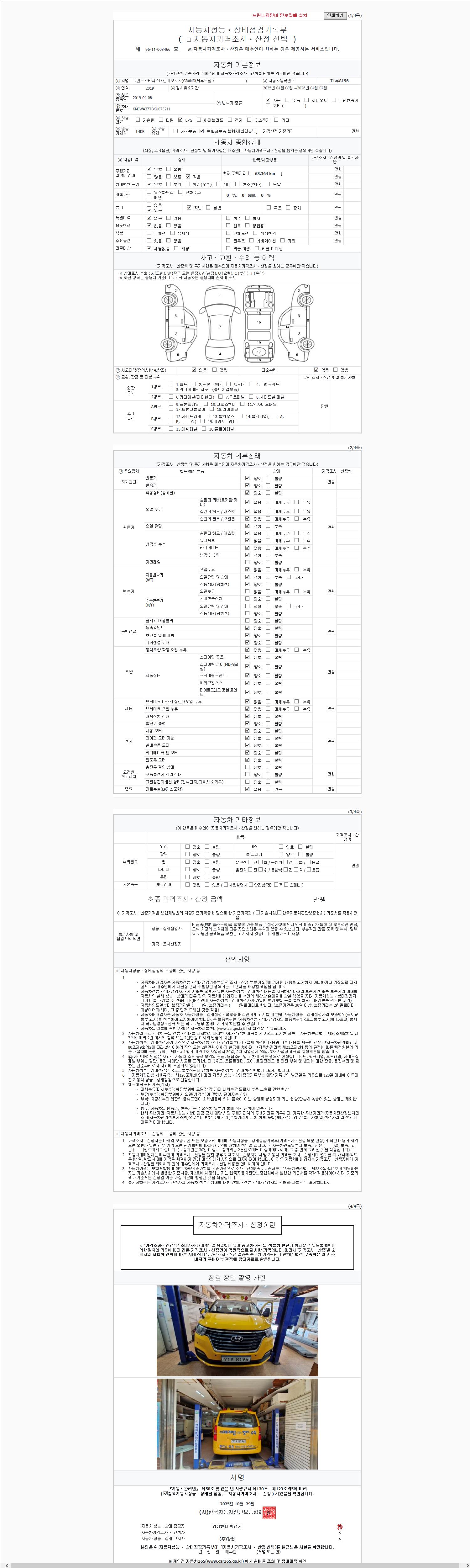 2. 차량 등록증이나 성능점검지 등을 상담자에게 요청및 확인하시고 사전에 미리 점검 하시기를 권유드립니다.
