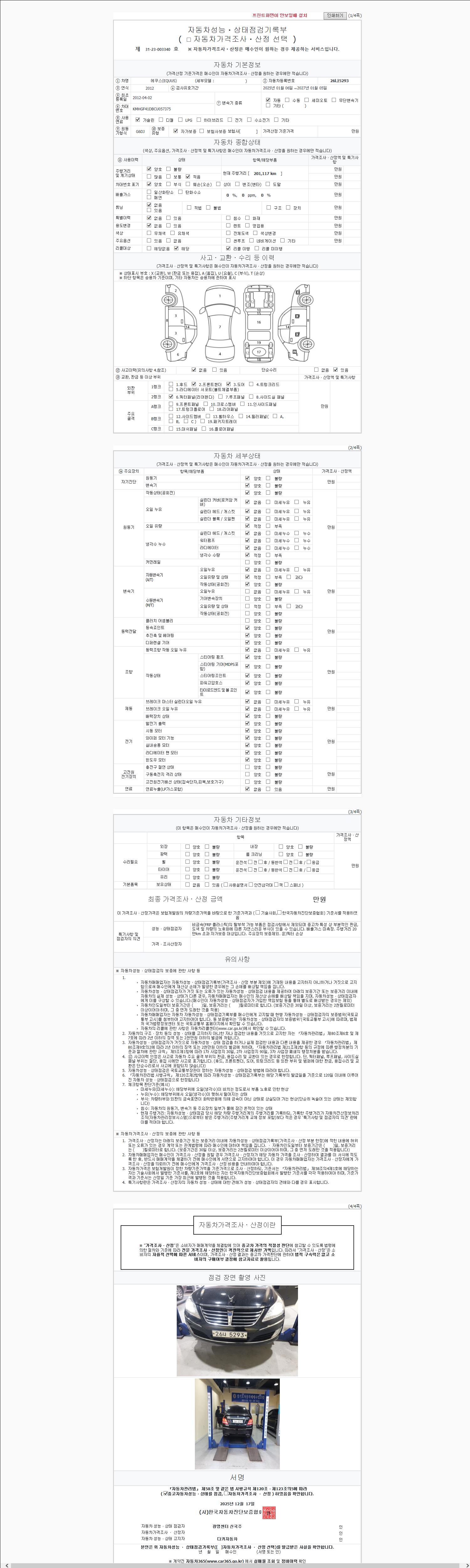 주행거리 201,117 km 차량번호 26나5293