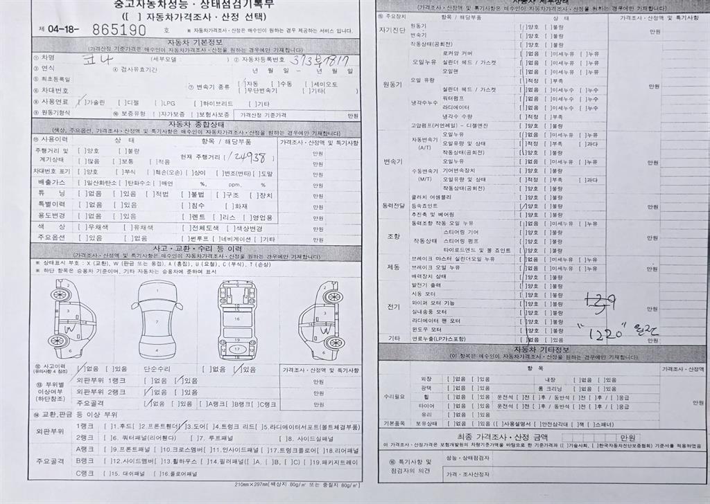 2. 차량 등록증이나 성능점검지 등을 상담자에게 요청및 확인하시고 사전에 미리 점검 하시기를 권유드립니다.
