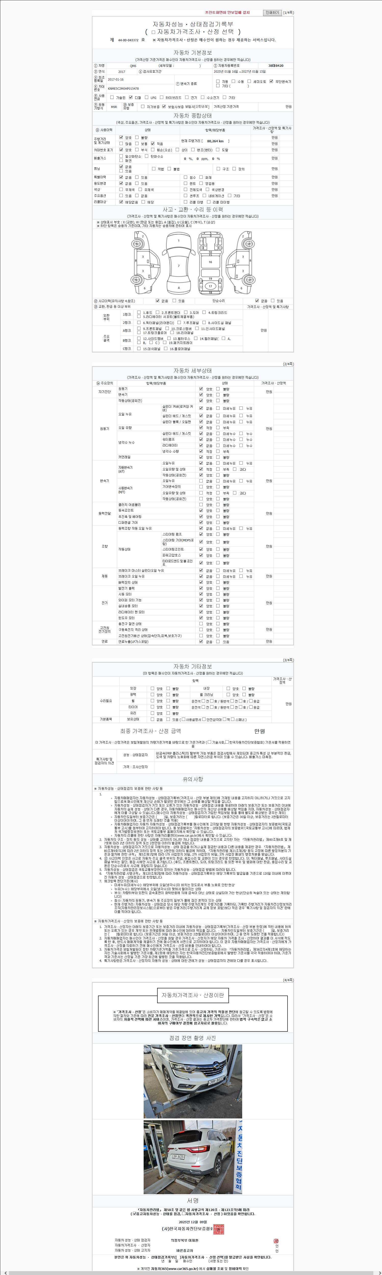 사고유무 성능기록부 참조 제시번호 제 2025226968 호