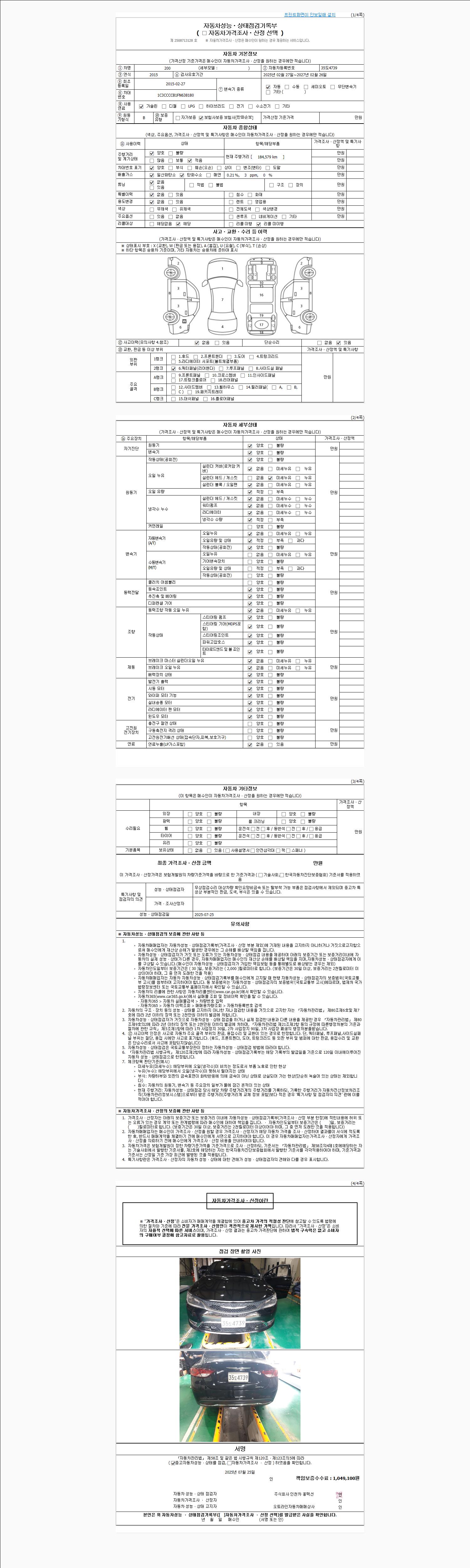 2. 차량 등록증이나 성능점검지 등을 상담자에게 요청및 확인하시고 사전에 미리 점검 하시기를 권유드립니다.