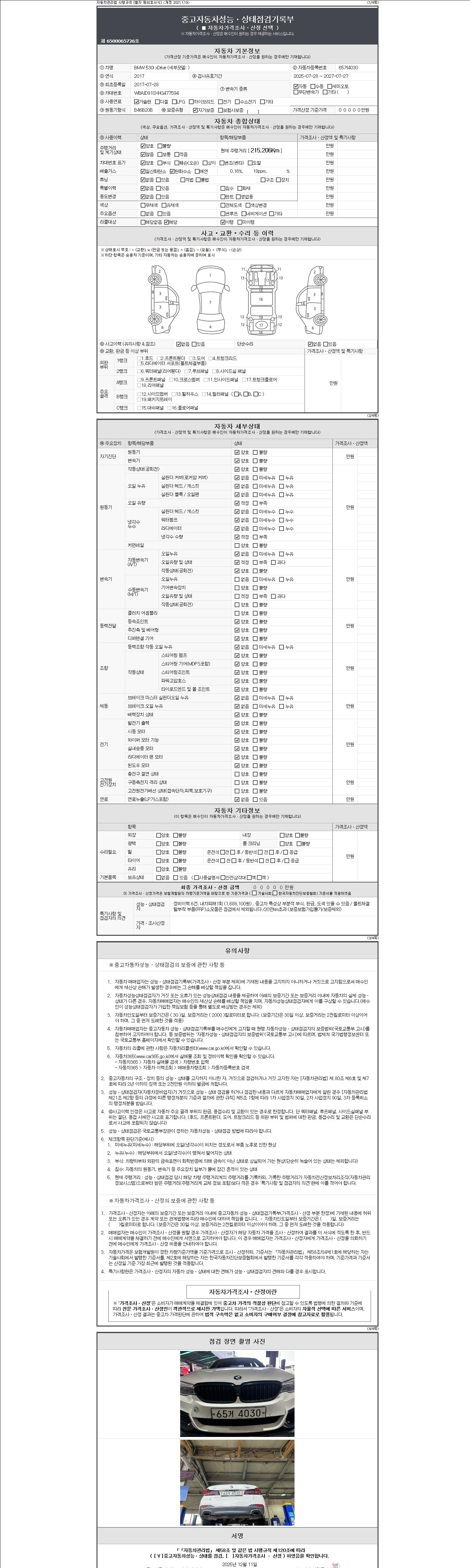 -중고자동차 매매업자를 통해 차량을 구입하실 경우 반드시 "중고자동차 성능, 상태점검 기록부"를 교뷰 받으셔야 하며, 매매업자는 반드시 의무 교부 하여야 압니다.