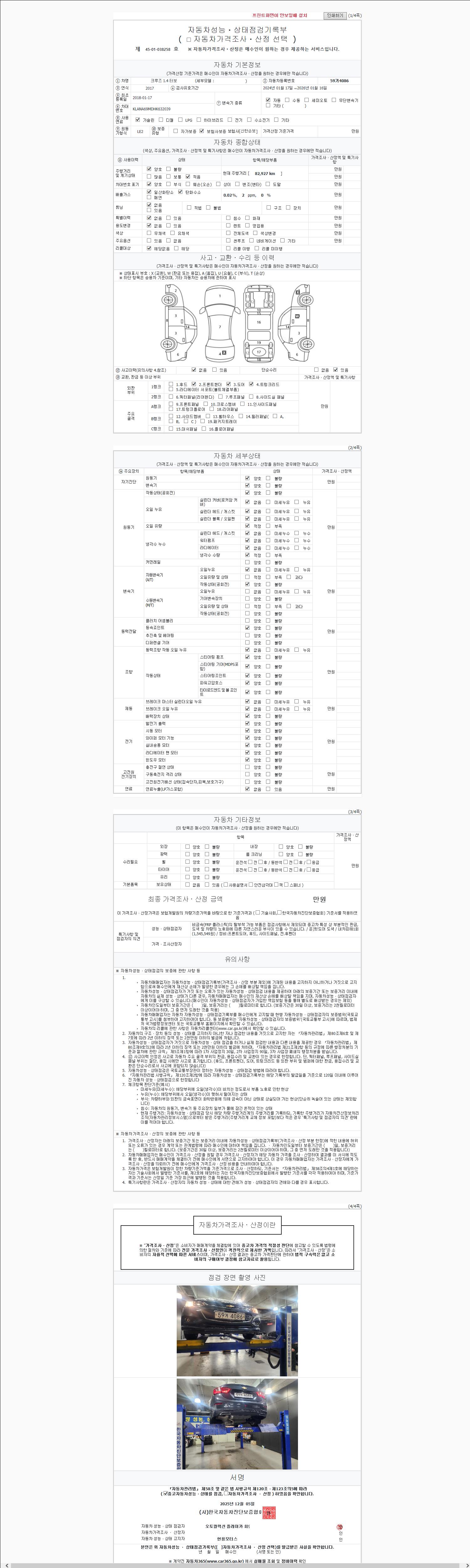 | 주행거리 | 82,927 km | 차량번호 | 59거4086 |