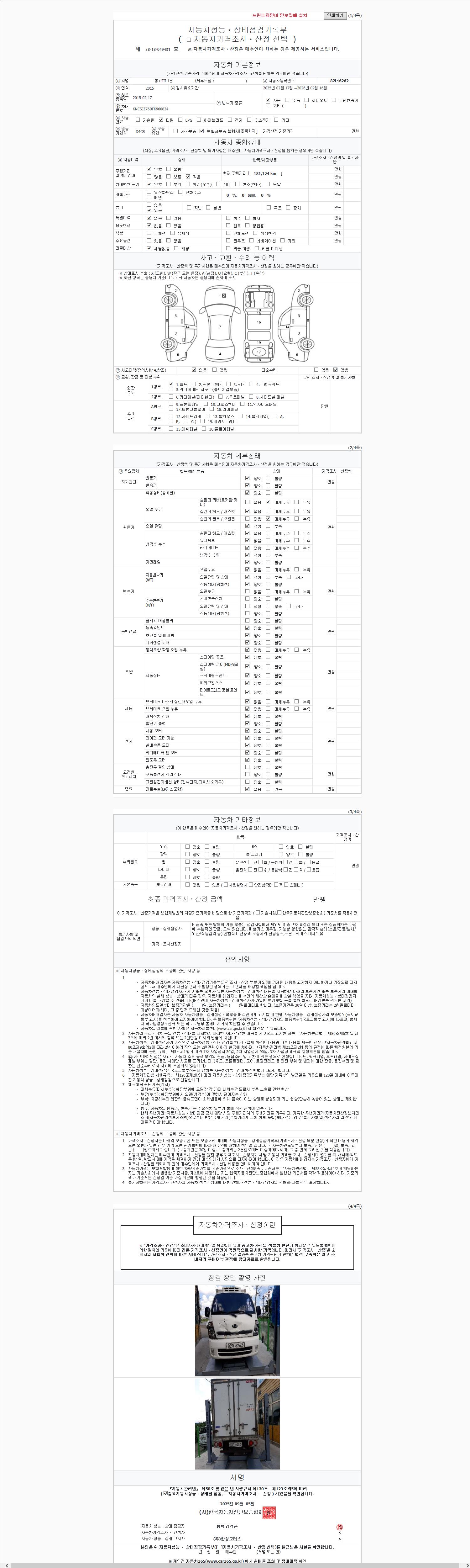 2. 차량 등록증이나 성능점검지 등을 상담자에게 요청및 확인하시고 사전에 미리 점검 하시기를 권유드립니다.