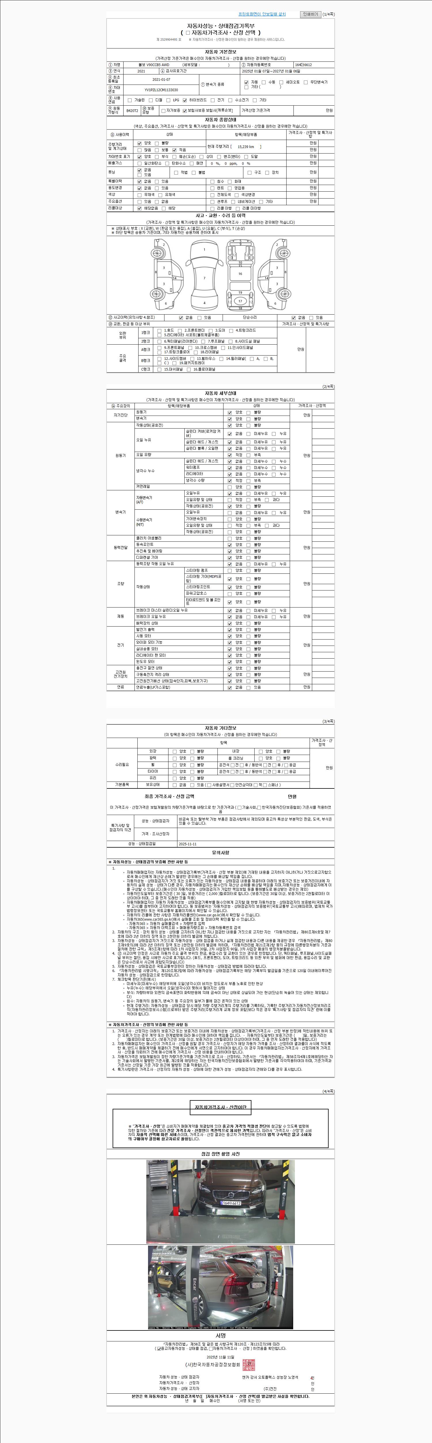 사고유무 성능기록부 참조 제시번호 제 2025158044 호
