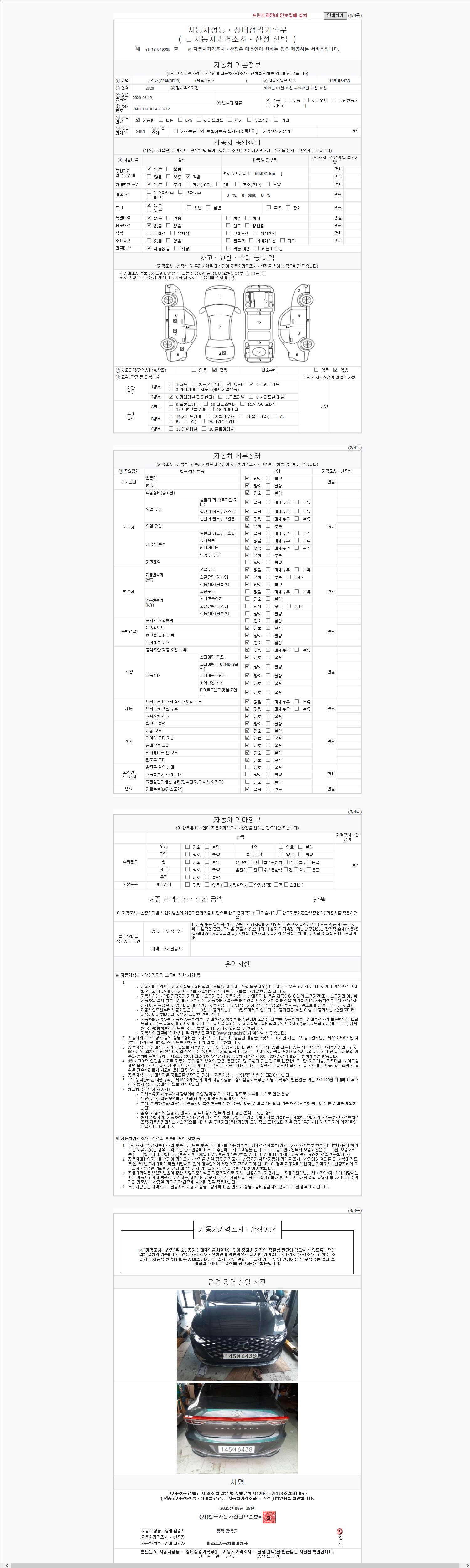 2. 차량 등록증이나 성능점검지 등을 상담자에게 요청및 확인하시고 사전에 미리 점검 하시기를 권유드립니다.