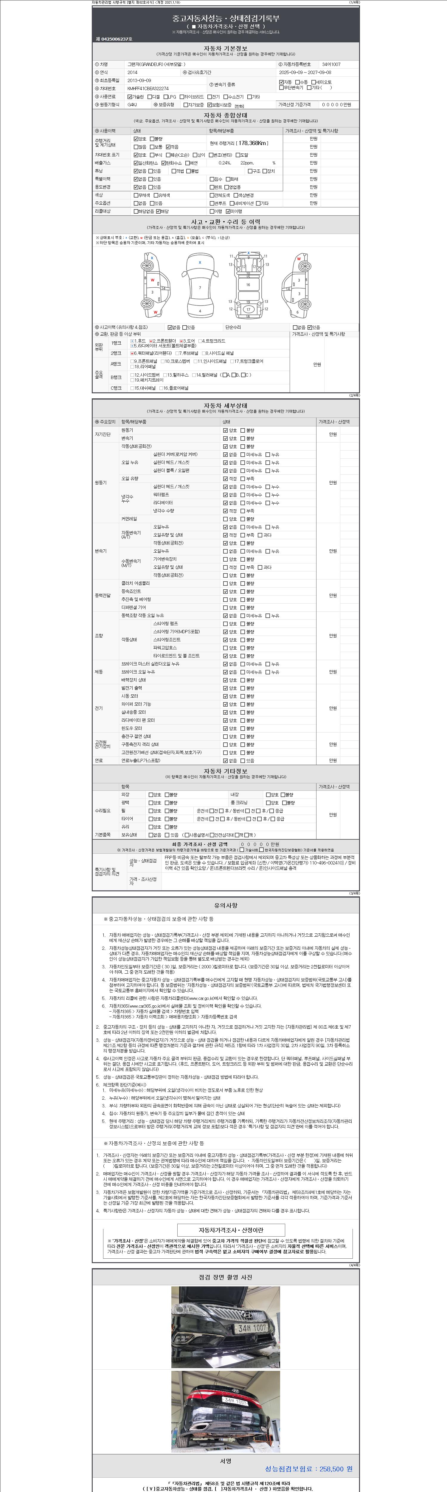 -중고자동차 매매업자를 통해 차량을 구입하실 경우 반드시 "중고자동차 성능, 상태점검 기록부"를 교뷰 받으셔야 하며, 매매업자는 반드시 의무 교부 하여야 압니다.