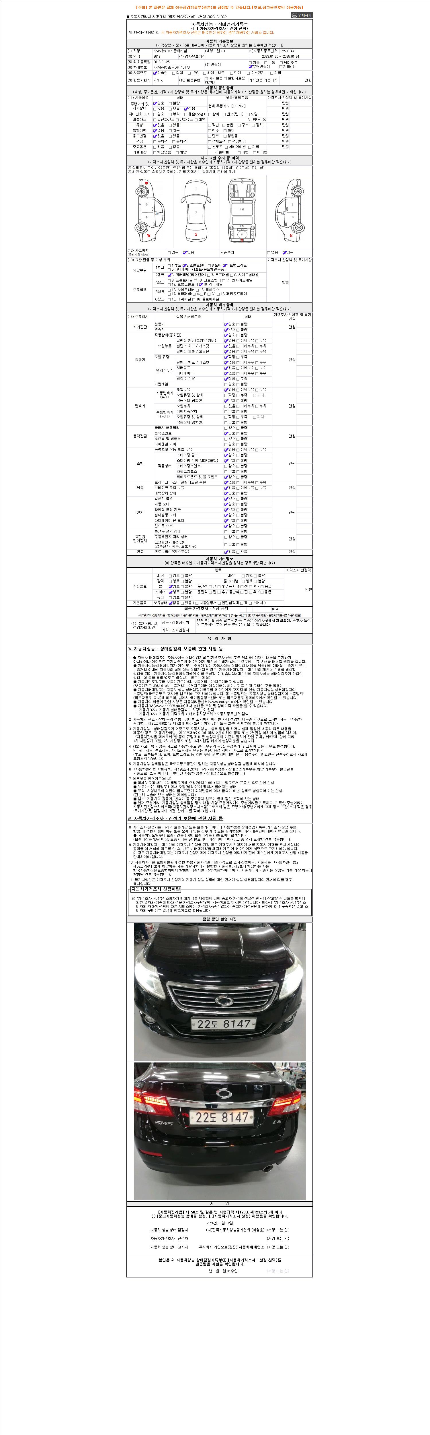 2. 차량 등록증이나 성능점검지 등을 상담자에게 요청및 확인하시고 사전에 미리 점검 하시기를 권유드립니다.