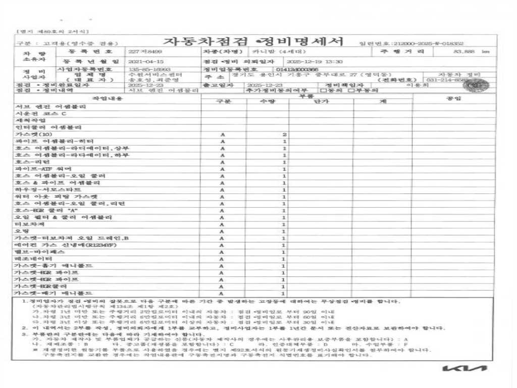 2. 차량 등록증이나 성능점검지 등을 상담자에게 요청및 확인하시고 사전에 미리 점검 하시기를 권유드립니다.