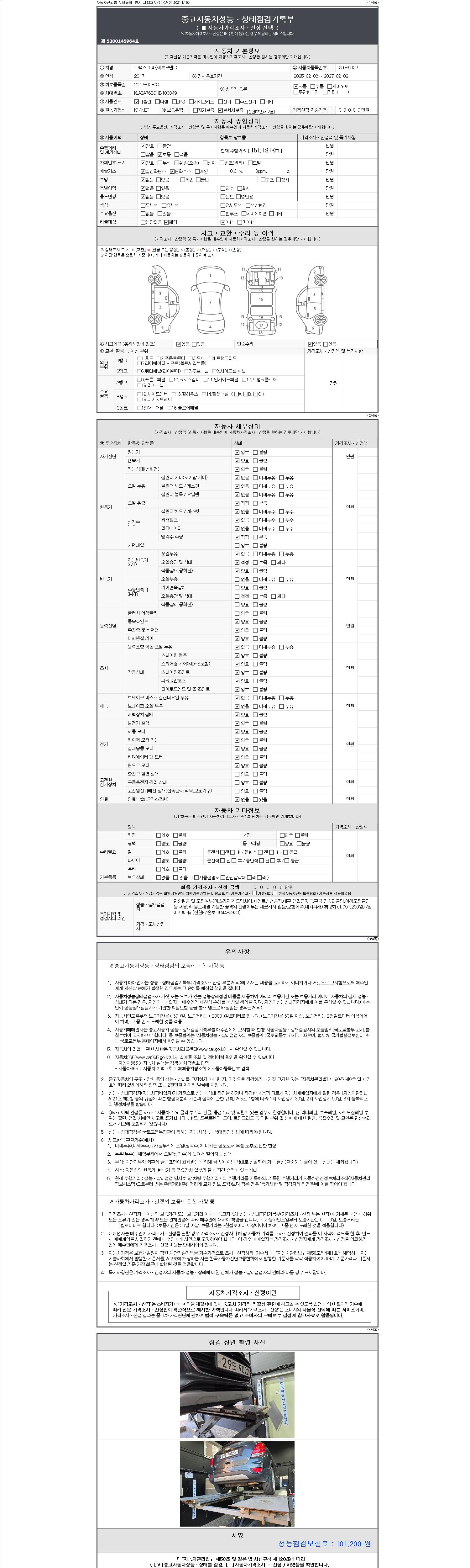 2. 차량 등록증이나 성능점검지 등을 상담자에게 요청및 확인하시고 사전에 미리 점검 하시기를 권유드립니다.