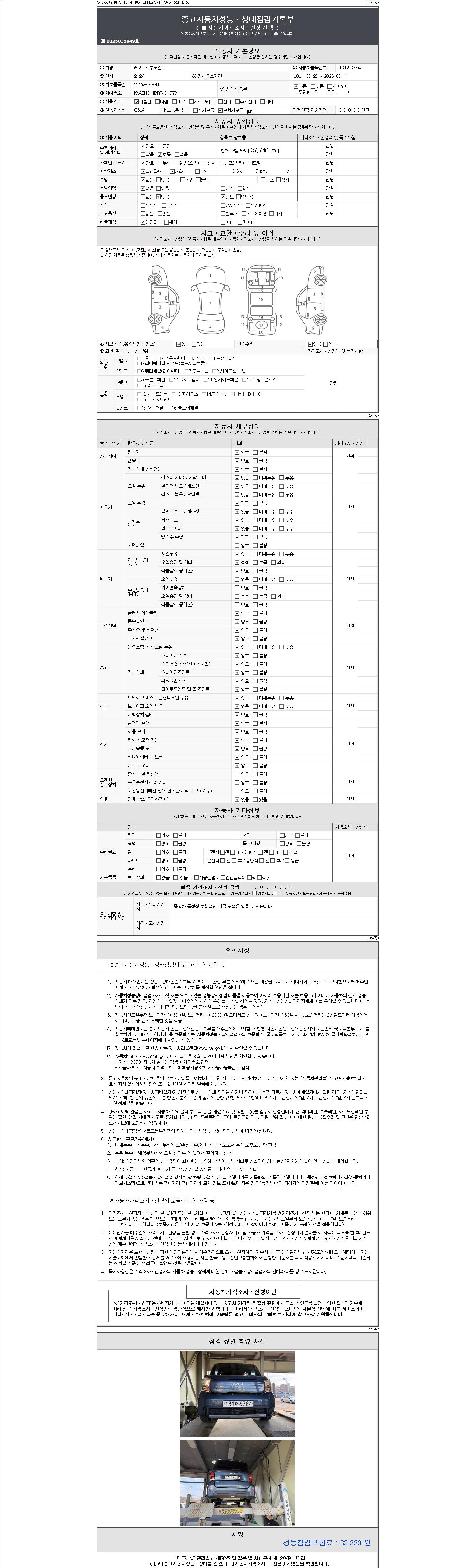 2. 차량 등록증이나 성능점검지 등을 상담자에게 요청및 확인하시고 사전에 미리 점검 하시기를 권유드립니다.