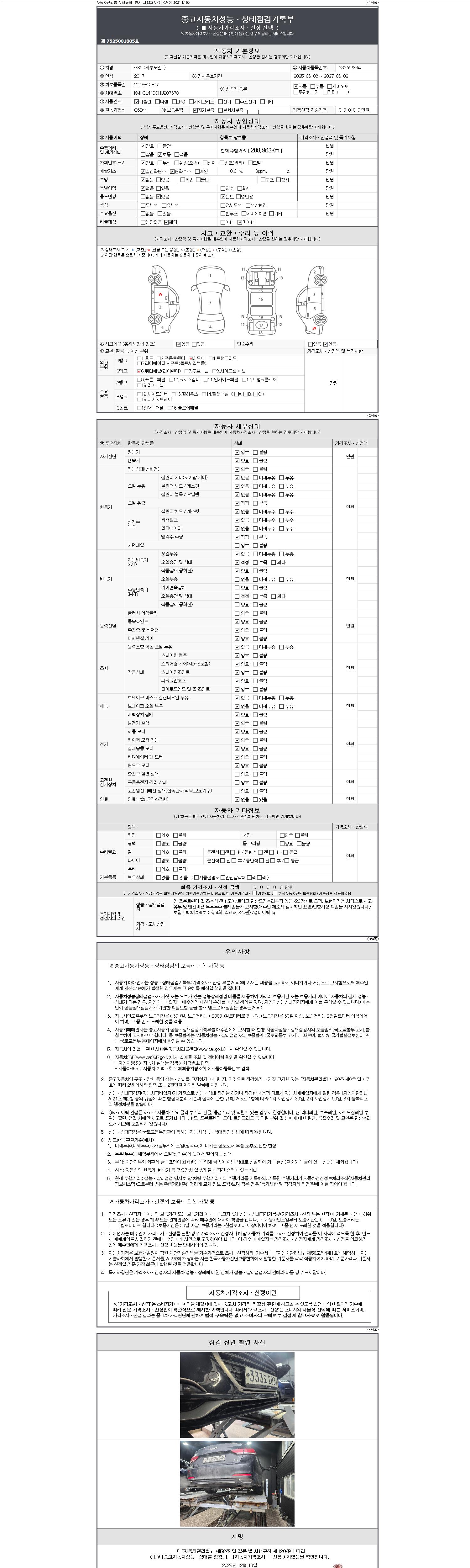 2. 차량 등록증이나 성능점검지 등을 상담자에게 요청및 확인하시고 사전에 미리 점검 하시기를 권유드립니다.