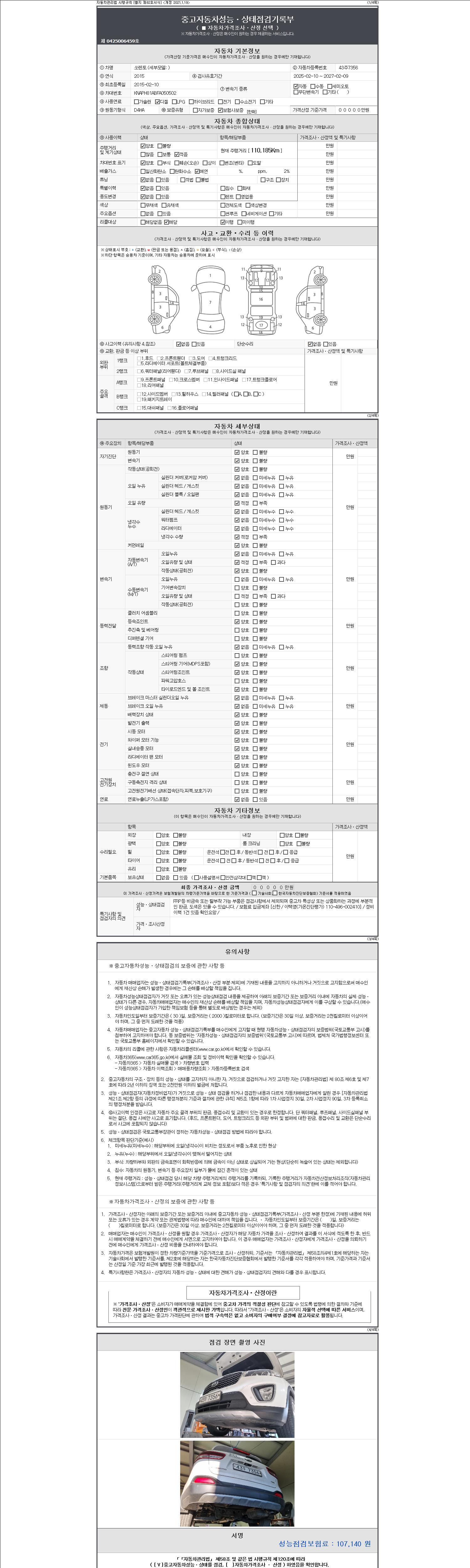 2. 차량 등록증이나 성능점검지 등을 상담자에게 요청및 확인하시고 사전에 미리 점검 하시기를 권유드립니다.