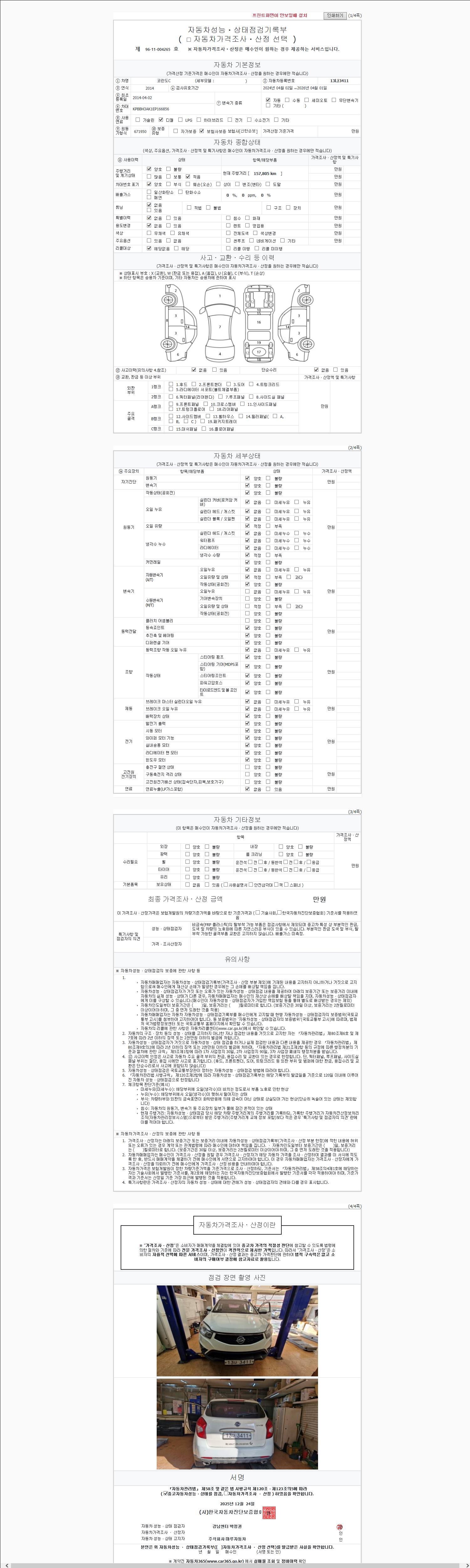 사고유무 성능기록부 참조 제시번호 제 2025174359 호