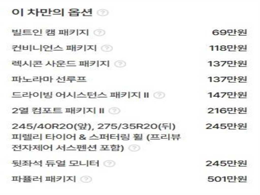 | 연료 / 변속기 | ----- | 휘발유 / 오토 |