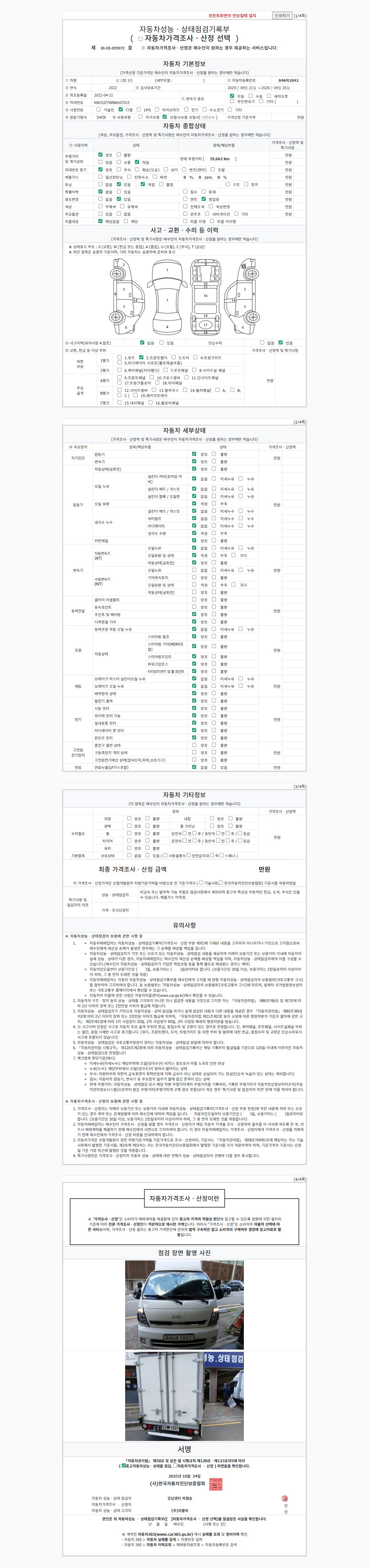 | 주행거리 | 39,662 km | 차량번호 | 846마1842 | 사고유무 | 성능기록부 참조 | 제시번호 | 제 2025178296 호 |