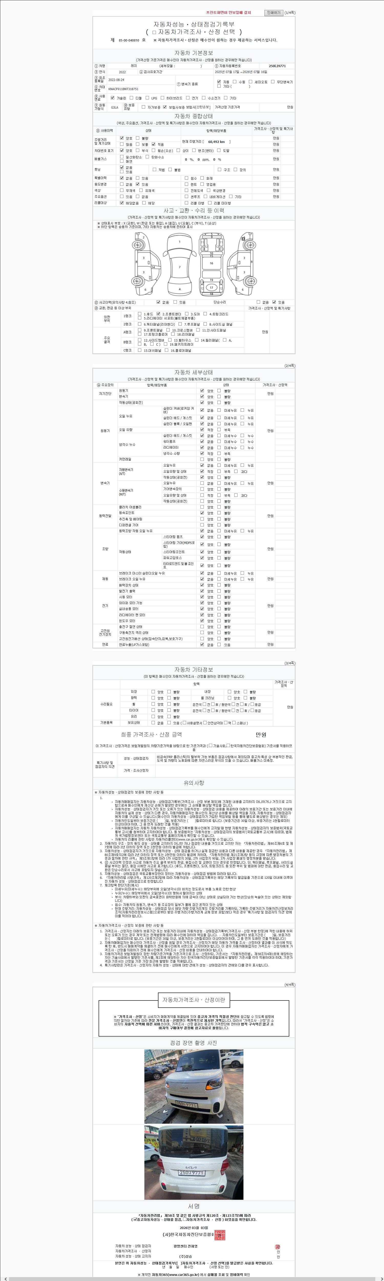 - 2. 차량 등록증이나 성능점검지 등을 상담자에게 요청및 확인하시고 사전에 미리 점검 하시기를 권유드립니다.