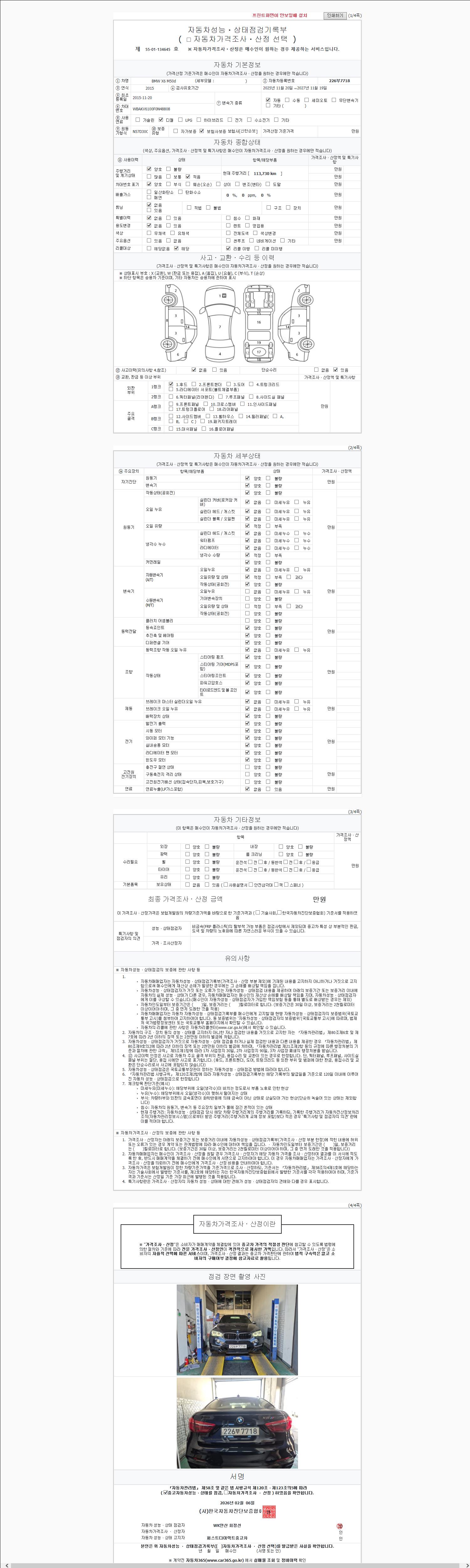 | 주행거리 | 113,730 km | 차량번호 | 226부7718 | 사고유무 | 성능기록부 참조 | 제시번호 | 제 2147483647 호 |