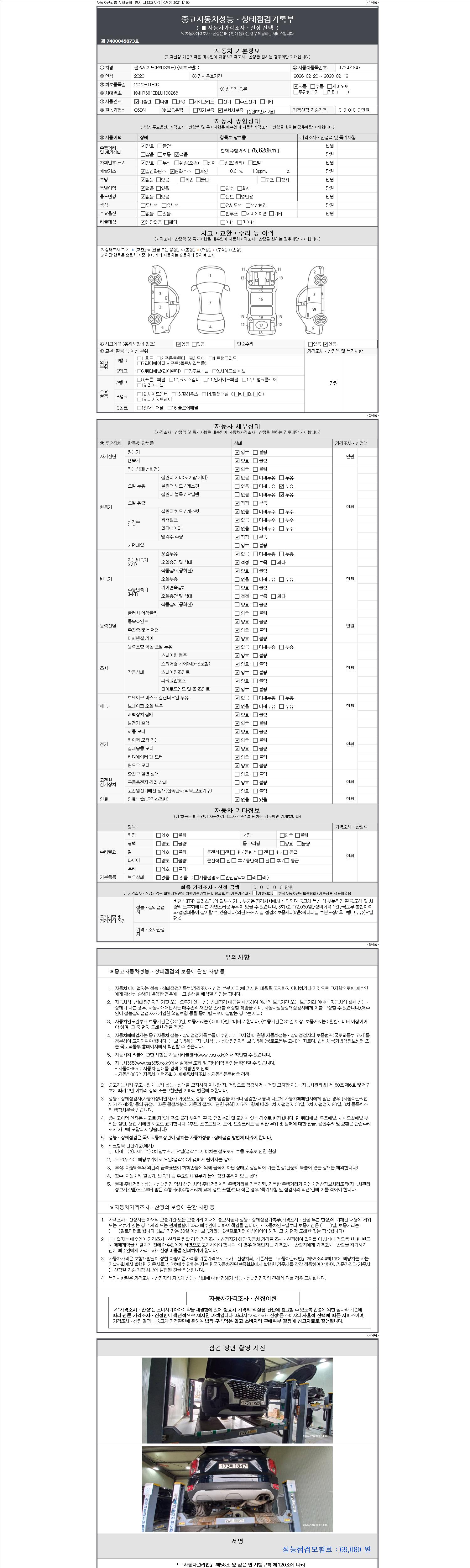 -중고자동차 매매업자를 통해 차량을 구입하실 경우 반드시 "중고자동차 성능, 상태점검 기록부"를 교뷰 받으셔야 하며, 매매업자는 반드시 의무 교부 하여야 압니다.