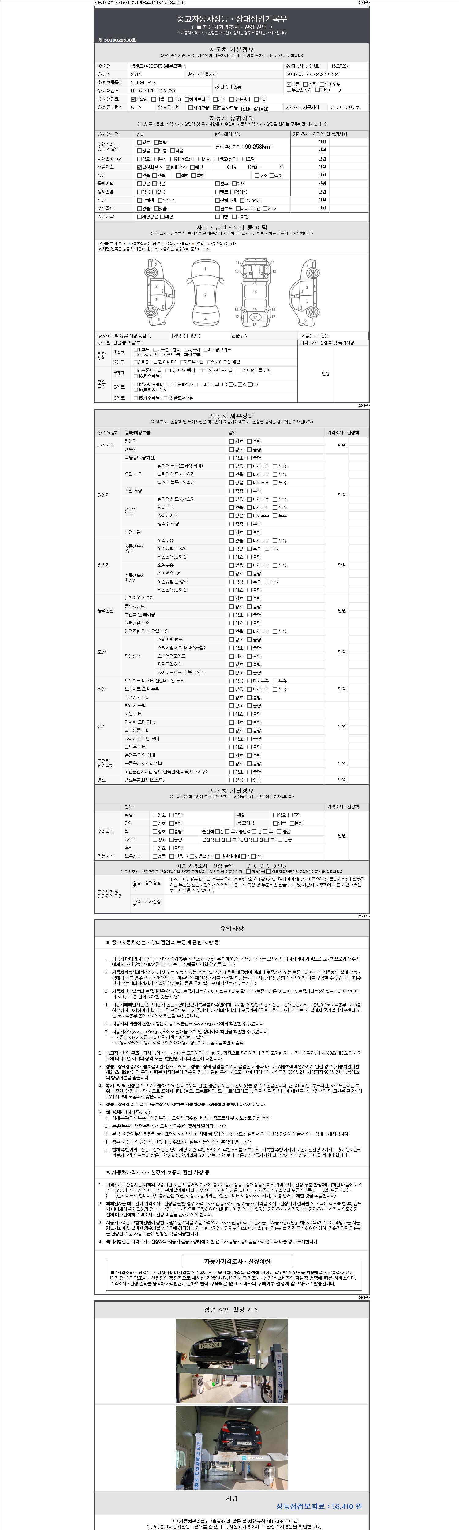 - 2. 차량 등록증이나 성능점검지 등을 상담자에게 요청및 확인하시고 사전에 미리 점검 하시기를 권유드립니다.