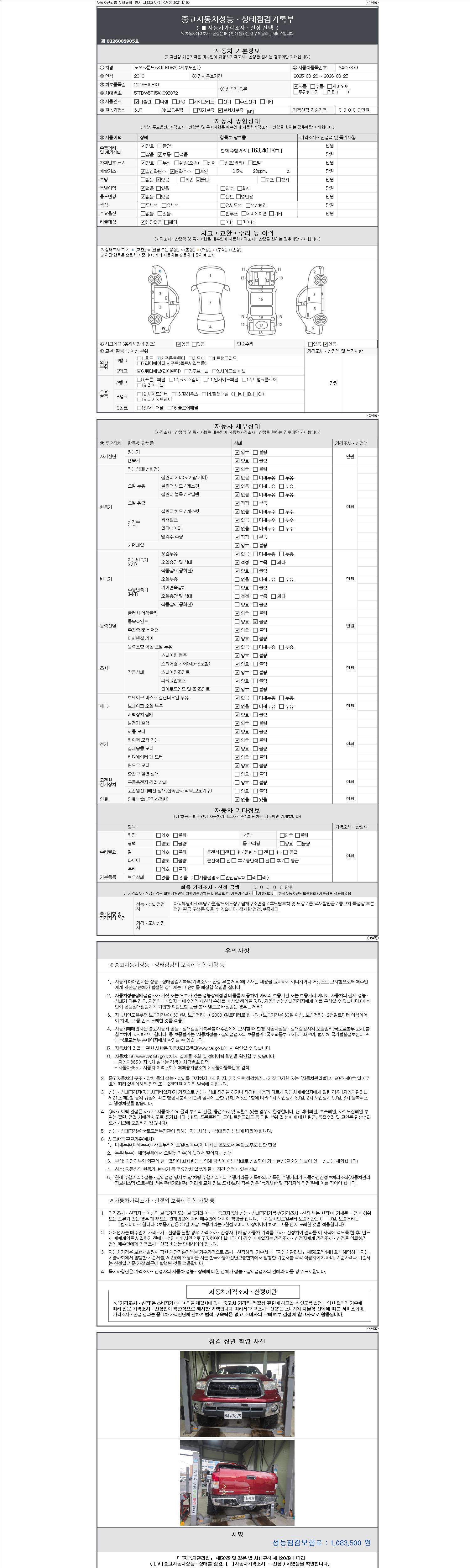 -중고자동차 매매업자를 통해 차량을 구입하실 경우 반드시 "중고자동차 성능, 상태점검 기록부"를 교뷰 받으셔야 하며, 매매업자는 반드시 의무 교부 하여야 압니다.