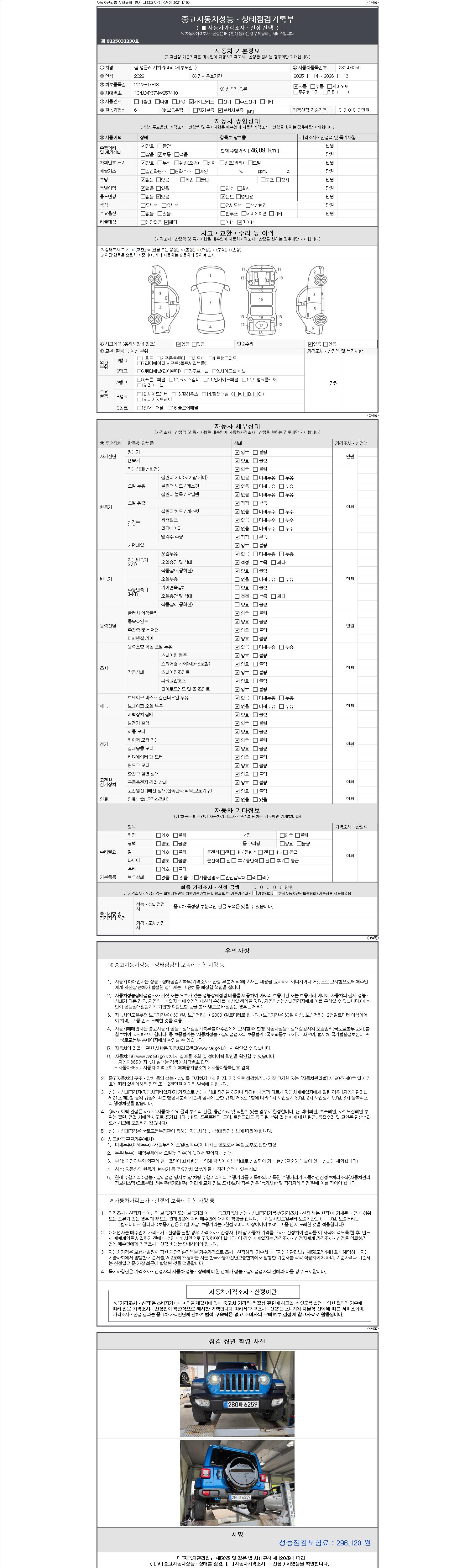 | 주행거리 | 46,868 km | 차량번호 | 280마6259 | 사고유무 | 성능기록부 참조 | 제시번호 | 제 2147483647 호 |