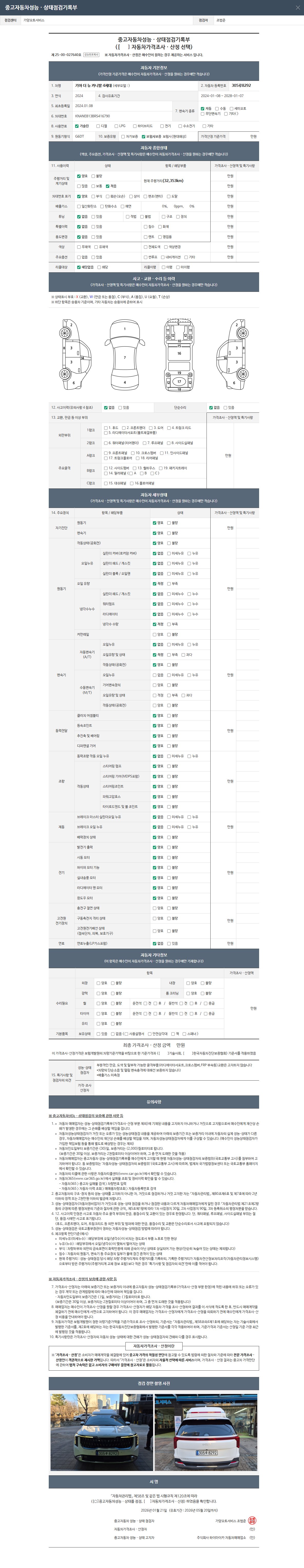 • 2. 차량 등록증이나 성능점검지 등을 상담자에게 요청및 확인하시고 사전에 미리 점검 하시기를 권유드립니다.