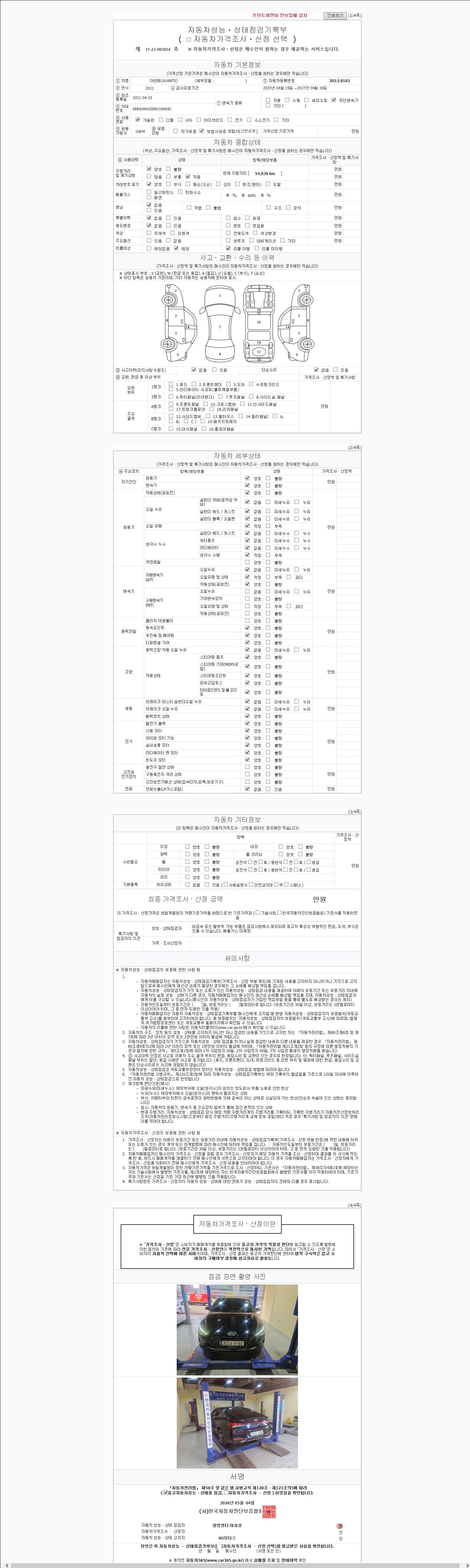 | 주행거리 | 54,038 km | 차량번호 | 302소8182 | 사고유무 | 성능기록부 참조 | 제시번호 | 제 2147483647 호 |