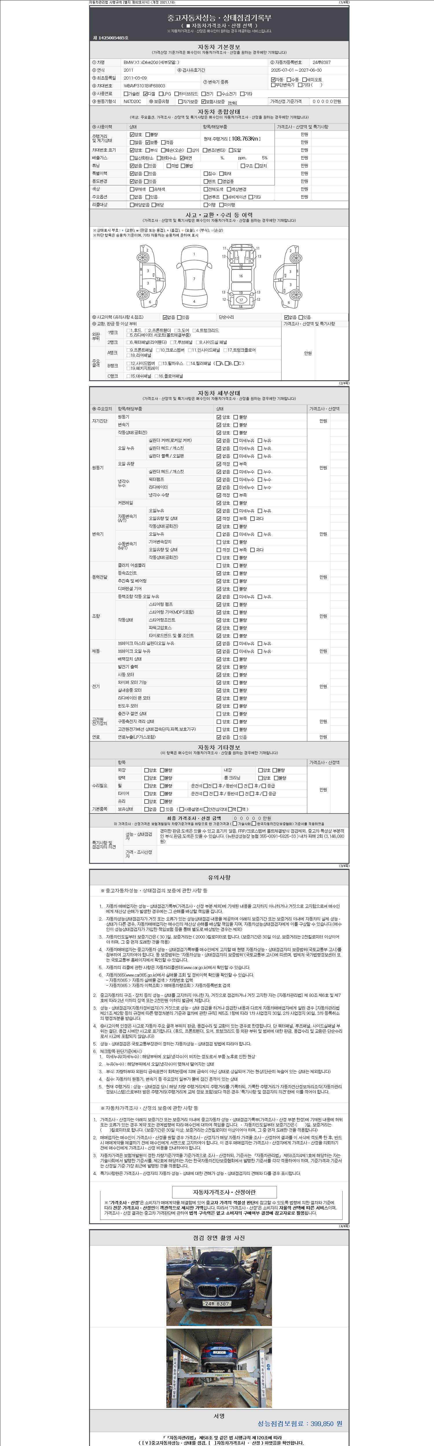 -중고자동차 매매업자를 통해 차량을 구입하실 경우 반드시 "중고자동차 성능, 상태점검 기록부"를 교뷰 받으셔야 하며, 매매업자는 반드시 의무 교부 하여야 압니다.