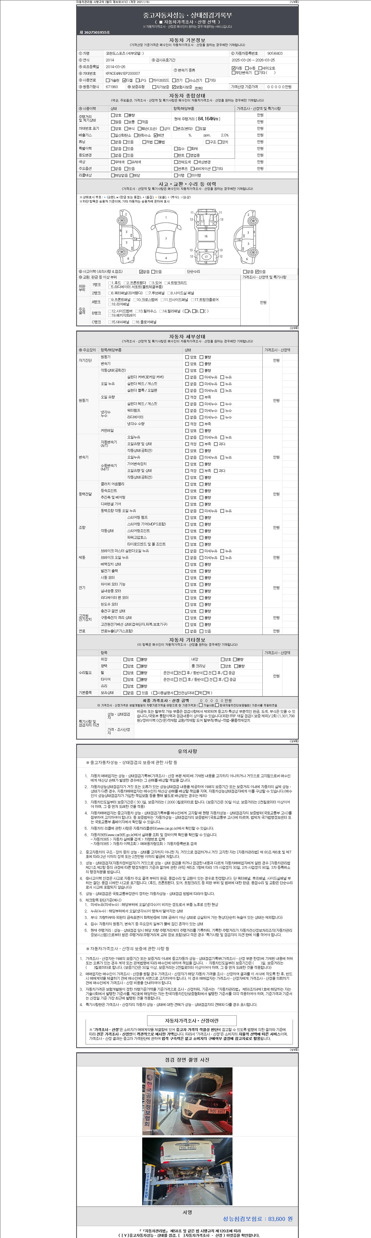 | 주행거리 | 84,164 km | 차량번호 | 90다8403 | 사고유무 | 성능기록부 참조 | 제시번호 | 제 2147483647 호 |