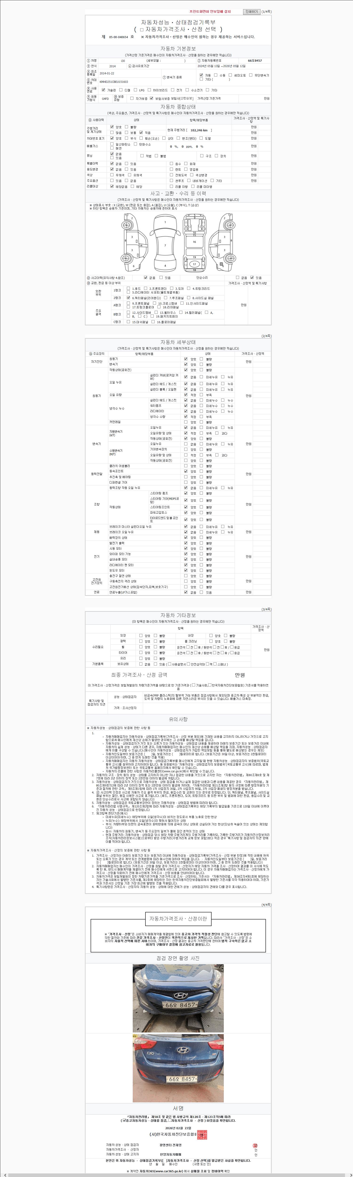 - 2. 차량 등록증이나 성능점검지 등을 상담자에게 요청및 확인하시고 사전에 미리 점검 하시기를 권유드립니다.